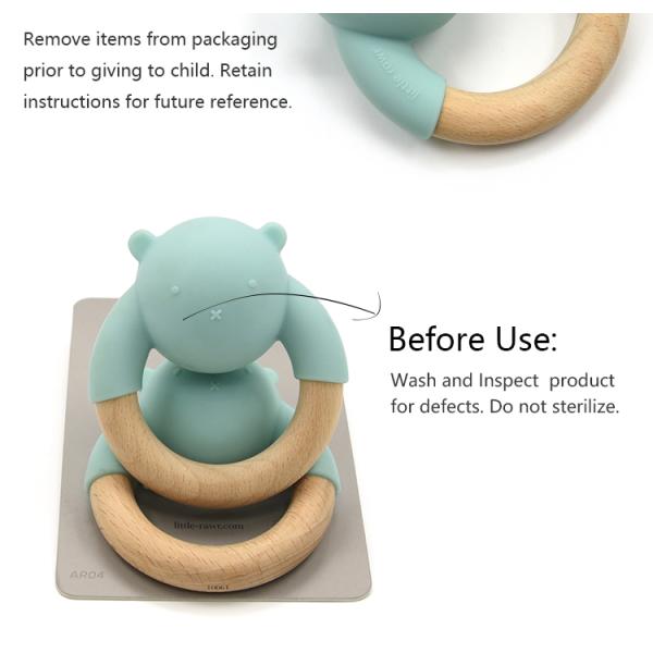 1. 100% food grade silicone , EN71 approved, Natural beech Wood.